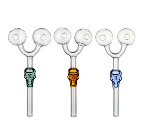 6" Colorful Skull Twin Ball OB Bubbler - Jar of 40 (MSRP $5.99 Each)