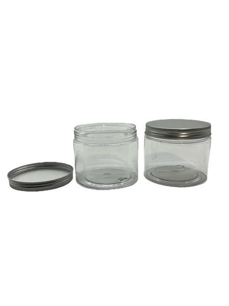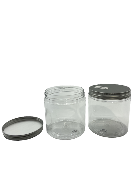Experience the convenience and versatility of our Clear Plastic Jar with Silver Screw Top Lid! Perfect for storing and organizing various items, from cosmetics to food, these jars come in different sizes for all your needs. The clear plastic makes it easy to see the contents and the silver screw top lid ensures a secure seal. Order yours today!