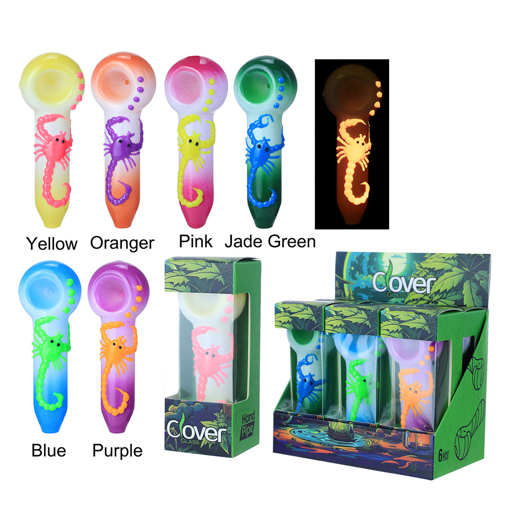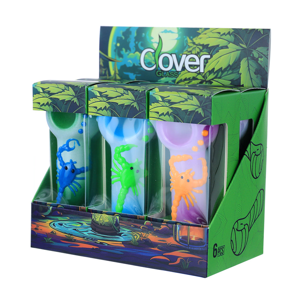 Clover Glass 5" Assorted Glass Hand Pipe - Display of 6 (WPF-656)