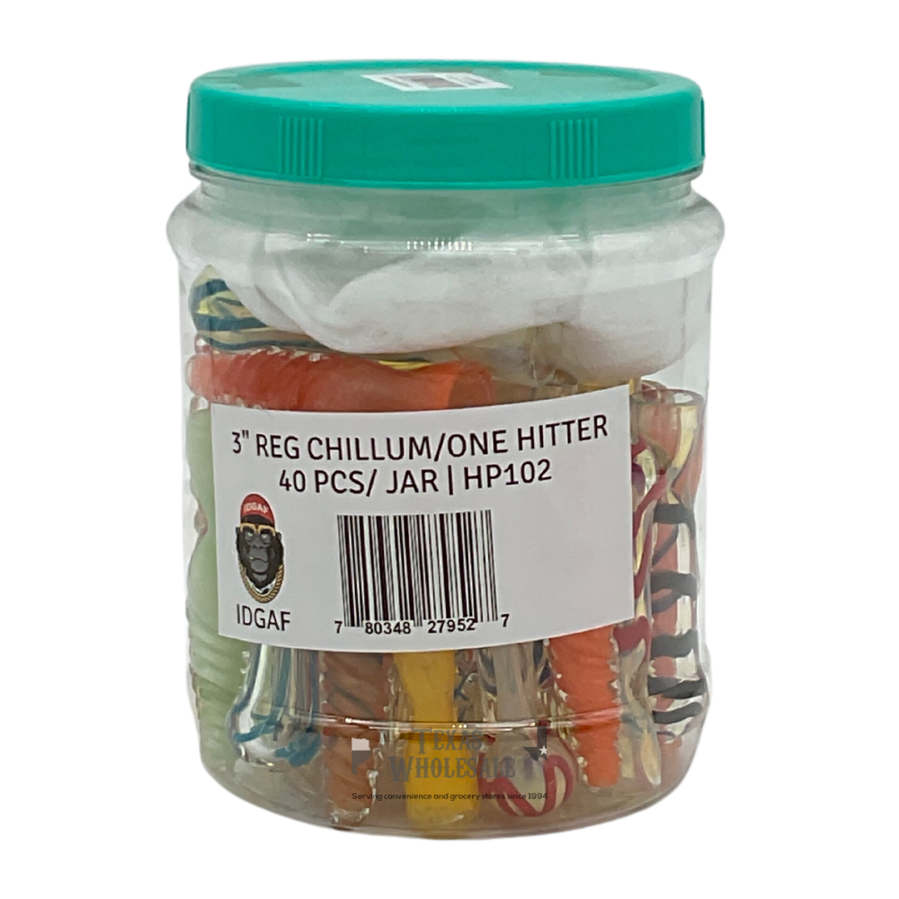 IDGAF 3 Inch Regular Chillum/ One Hitter 40 Piece Jar (MSRP $3.99ea)