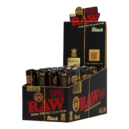 RAW Black Classic Cones King Size - Display of 32
