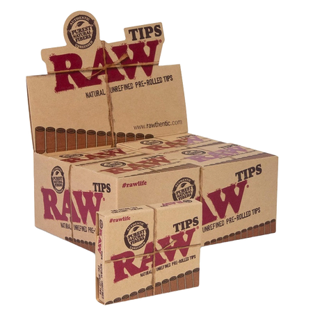 RAW Natural Unrefined Pre-Rolled Tips - Display of 20