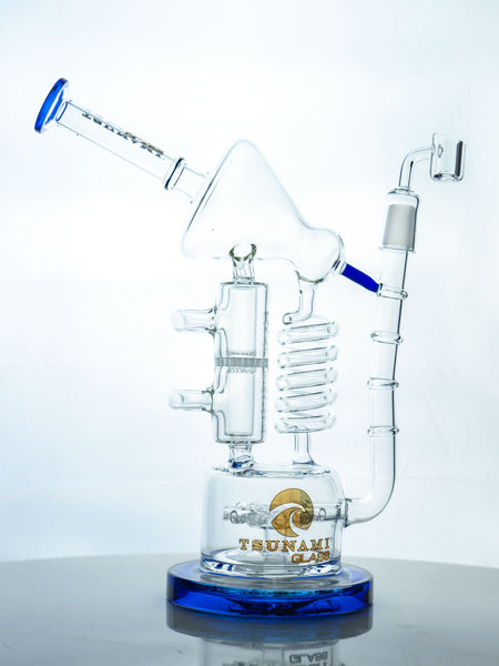 The Tsunami 12” Recycler Water Pipe is a masterpiece of glass engineering, built for smoothness, visual appeal, and maximum filtration. Featuring a Double Shower Head, Sprinkler Perc, Honeycomb Disc, and a Twist Recycler system, this water pipe delivers ultra-smooth rips with mesmerizing water flow action.