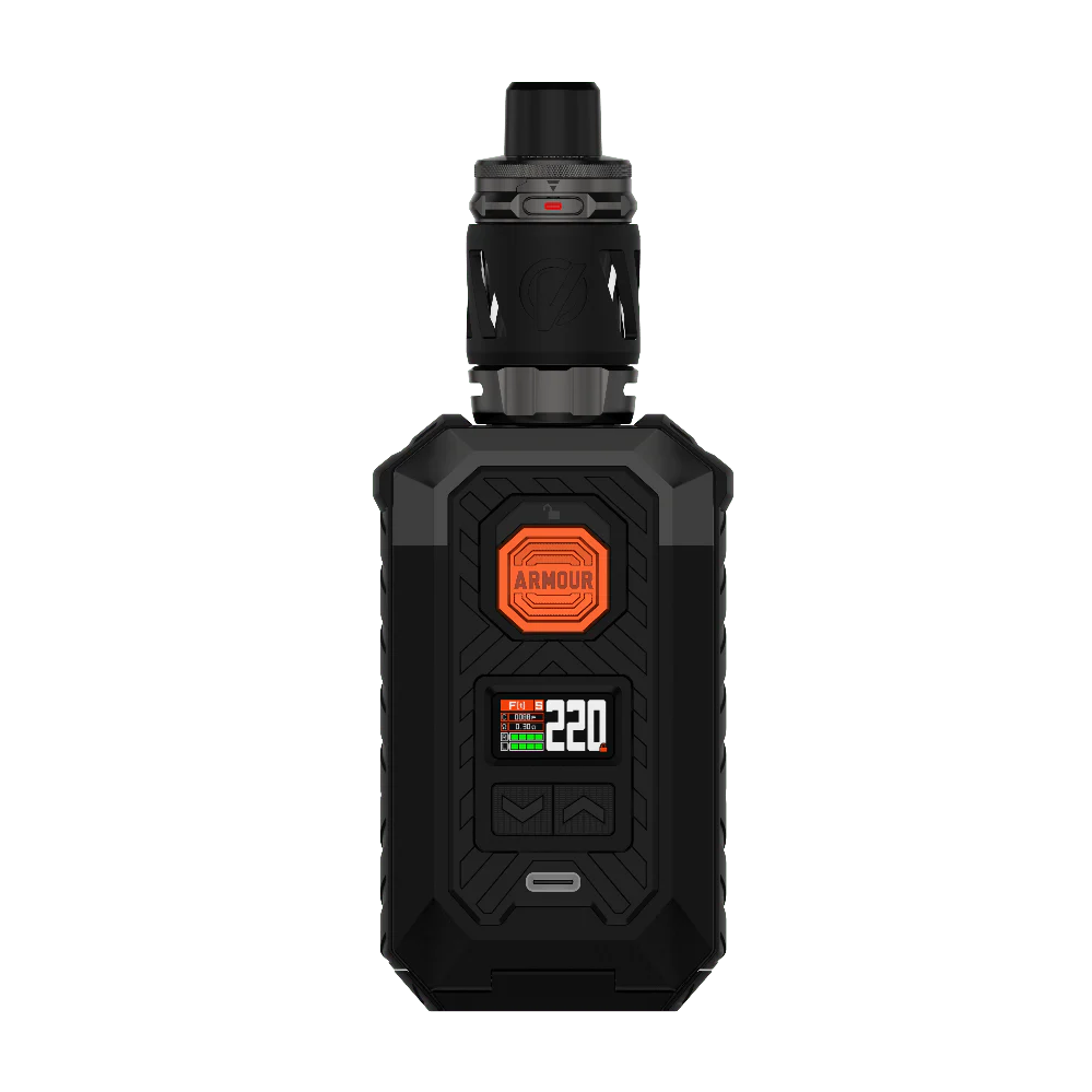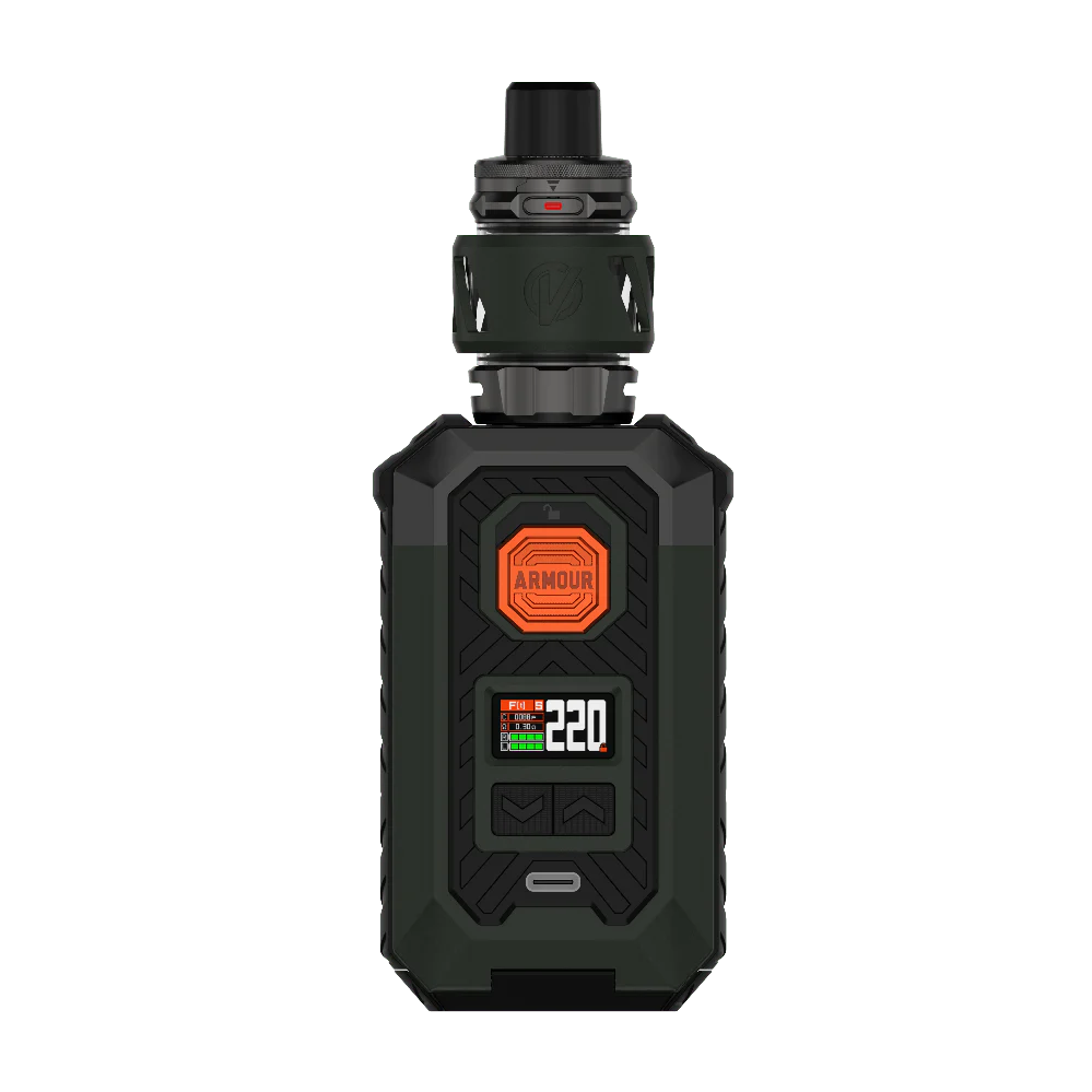 The Vaporesso Armour Max Kit delivers exceptional performance, durability, and style in one powerful device. Engineered with a robust TPU and zinc-alloy frame, it offers superior protection against drops and wear while maintaining a modern, tactical look. Powered by dual 21700 or 18650 batteries, the Armour Max ensures long-lasting performance with up to 220W of output for advanced vaping control.