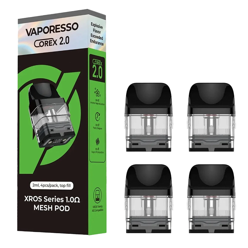 - Four (4) Vaporesso XROS Replacement Pods (Choose from 0.6Ω, 0.8Ω, 1.0Ω, or 1.2Ω).